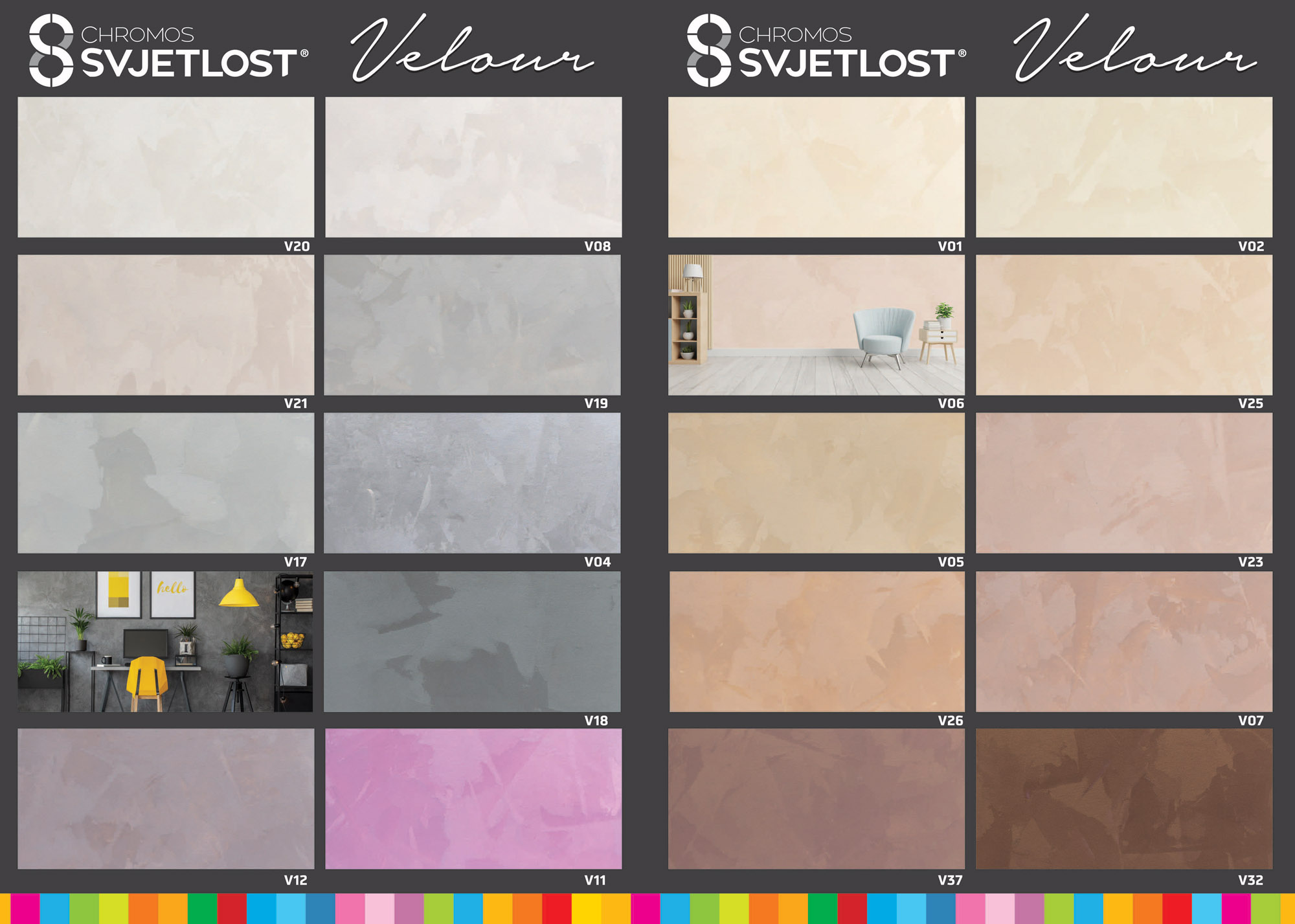 Proizvodi se u srebrnoj i zlatnoj nijansi, a primjenom Top Mix sustava za strojno nijansiranje CHROMOS-SVJETLOST može se dobiti čitav niz nijansi iz nove BRAVO INSPIRE VELOUR ton karte.